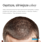 • Stymulacja wzrostu włosów – składniki aktywne przyspieszają przejście mieszków włosowych do fazy anagenu, pobudzając wzrost nowych, mocniejszych włosów